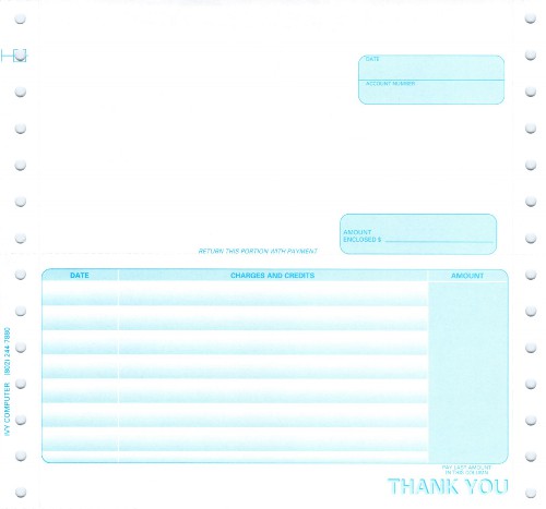 Trash Flow's pre-formatted small invoice/statement is 6-1/2"h x 7"w. When folded on the perforation in the body of the paper, it fits perfectly in our Small Window Envelopes.