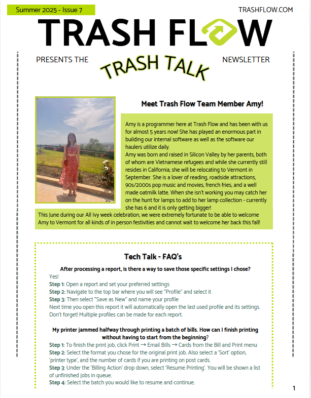 Trash Flow Newsletter • © 2025 Trash Flow / Ivy Computer Systems
